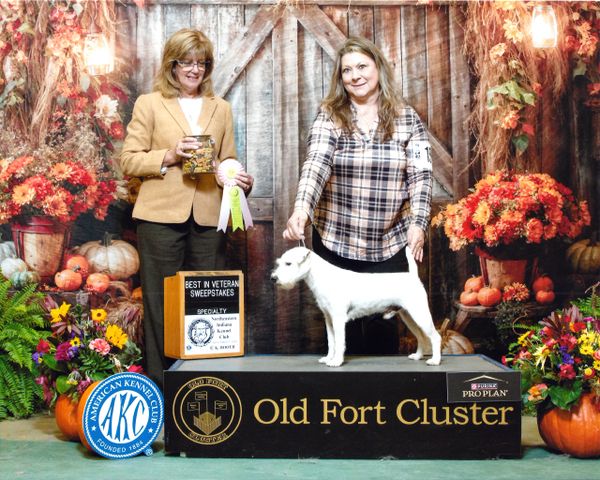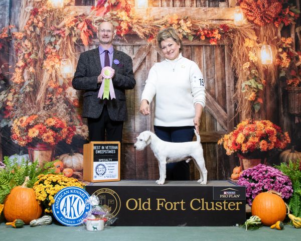 Twerk BEST VETERAN IN SWEEPSTAKES, 2022 PRTAA Specialty, Old Fort Cluster Dog Show - Northeastern Indiana Kennel Club, Ft Wayne IN.